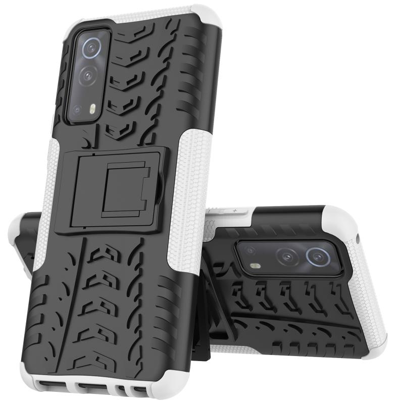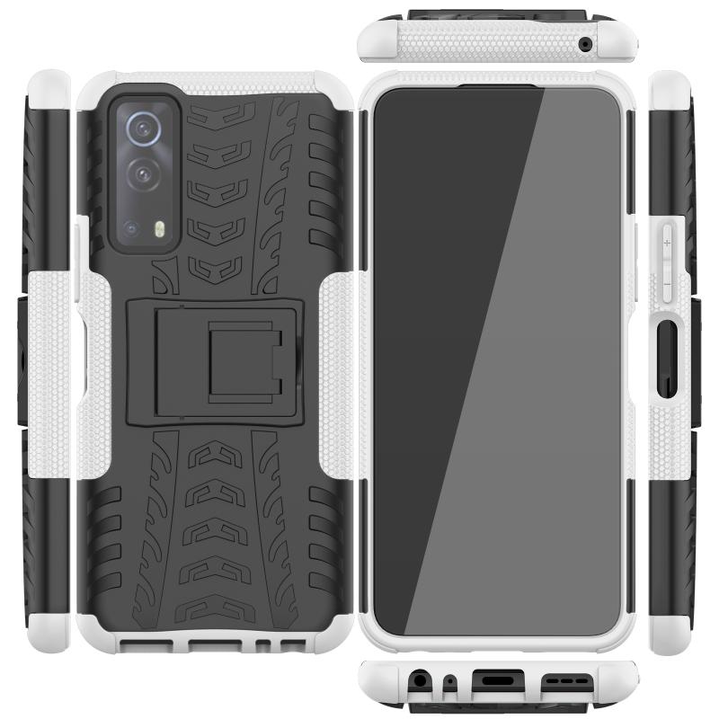 Θήκη προστασίας για Vivo iQOO Z3 με υφή ελαστικού, αντικραδασμική από TPU+PC με βάση στήριξης (Κόκκινη)