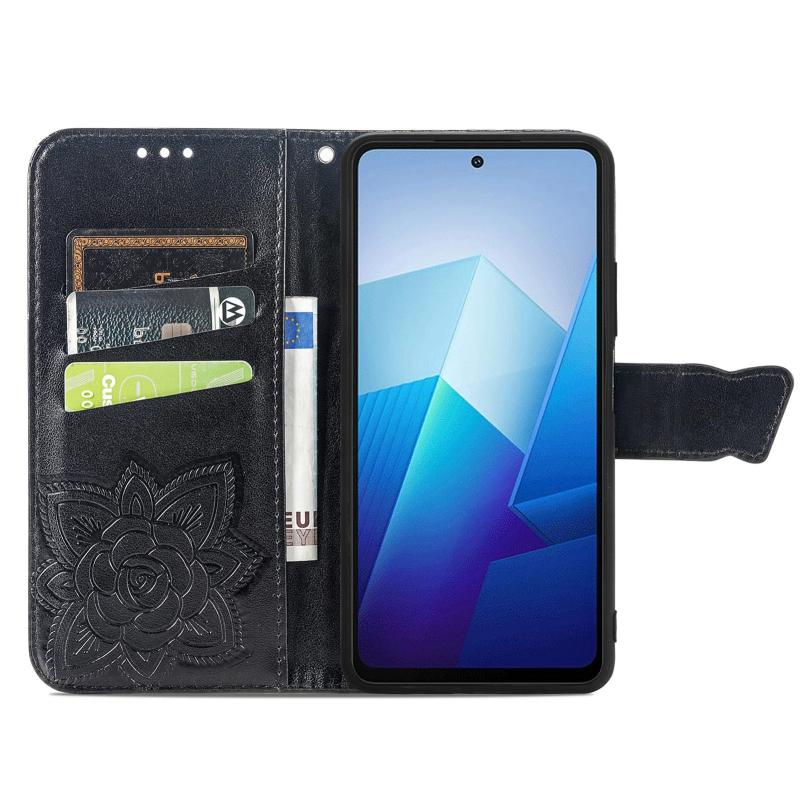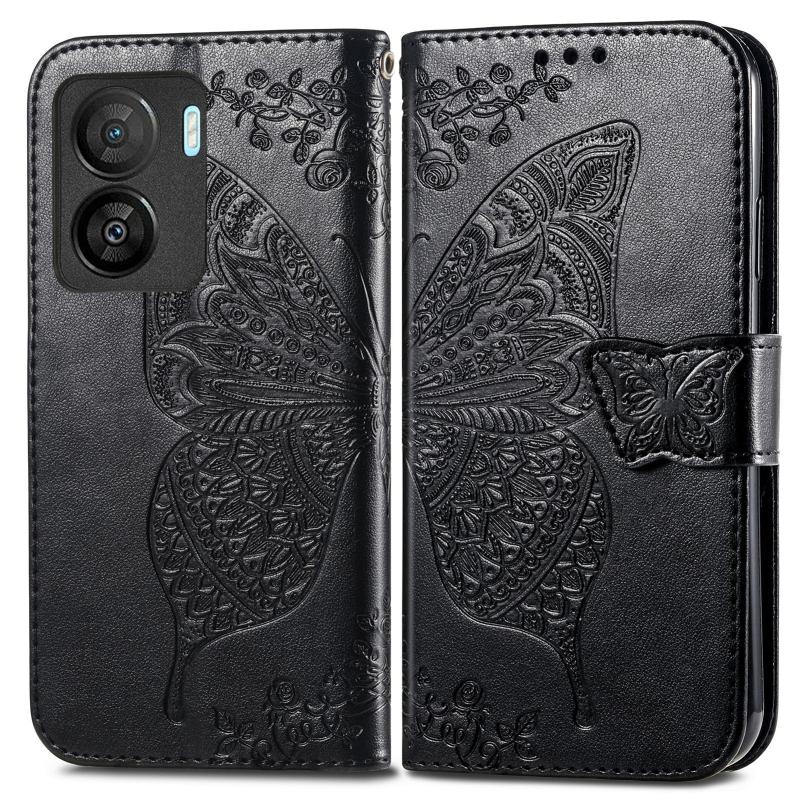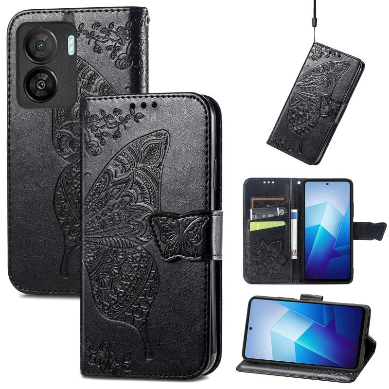For vivo iQOO Z7 Butterfly Love Flower Embossed Leather Phone Case(Black)