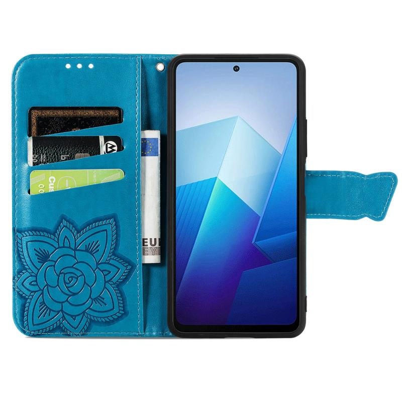 For vivo iQOO Z7 Butterfly Love Flower Embossed Leather Phone Case(Blue)