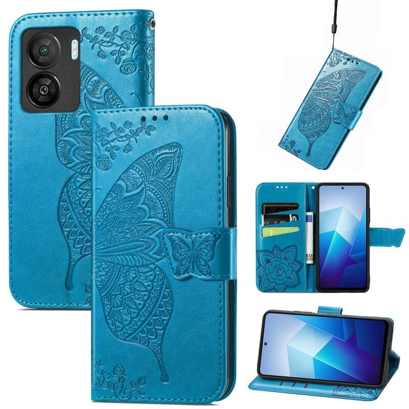 Θήκη τηλεφώνου vivo iQOO Z7 Butterfly Love Flower Embossed Leather (Μπλε)