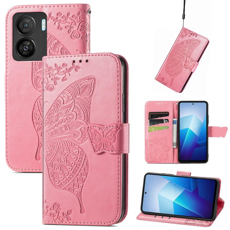 For vivo iQOO Z7 Butterfly Love Flower Embossed Leather Phone Case(Pink)