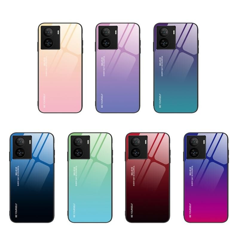 Για vivo iQOO Z7 Κλίση χρώμα γυαλί τηλέφωνο υπόθεση (Πράσινο κυανό)
