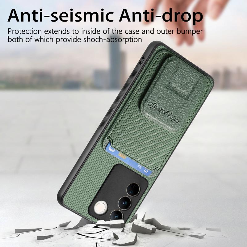For vivo iQOO Z8 Carbon Fiber Card Bag Fold Stand Phone Case(Green)