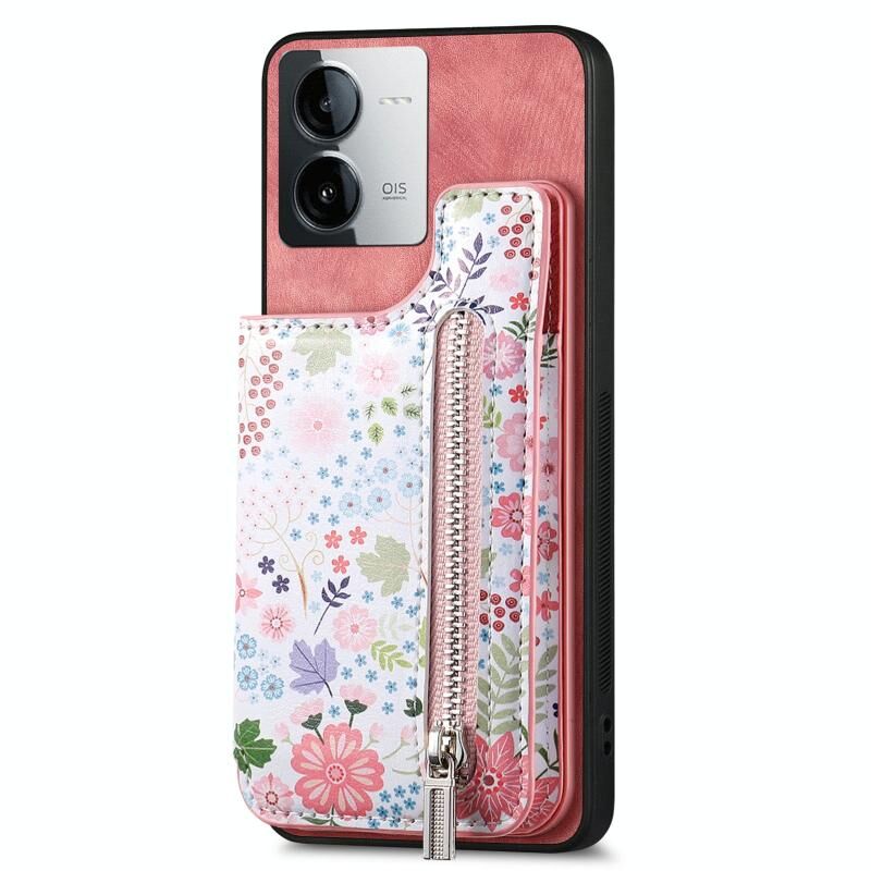 Για vivo iQOO Z8 Ρετρό ζωγραφισμένο φερμουάρ πορτοφόλι πίσω τηλέφωνο υπόθεση (ροζ)