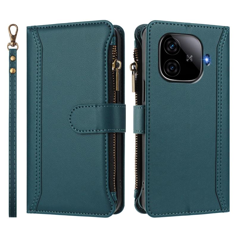 For vivo iQOO Z9 5G / Z9 Turbo 5G Magnetic Closure 9 Card Slots Zipper Leather Case with Hand Strap(Dark Green)