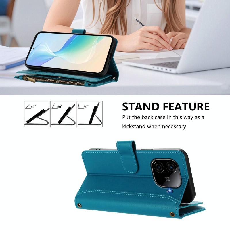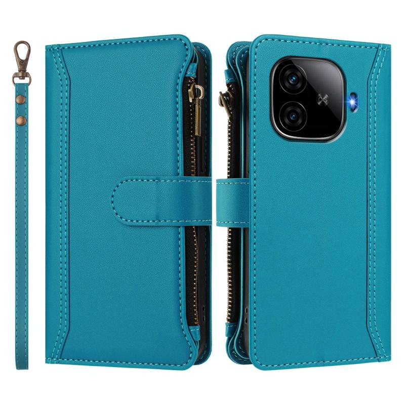 For vivo iQOO Z9 5G / Z9 Turbo 5G Magnetic Closure 9 Card Slots Zipper Leather Case with Hand Strap(Turquoise)