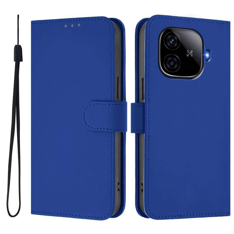 Θήκη τηλεφώνου από δέρμα με αίσθηση, συμπαγές χρώμα για vivo iQOO Z9 5G / Z9 Turbo 5G με κορδόνι (Καφέ)