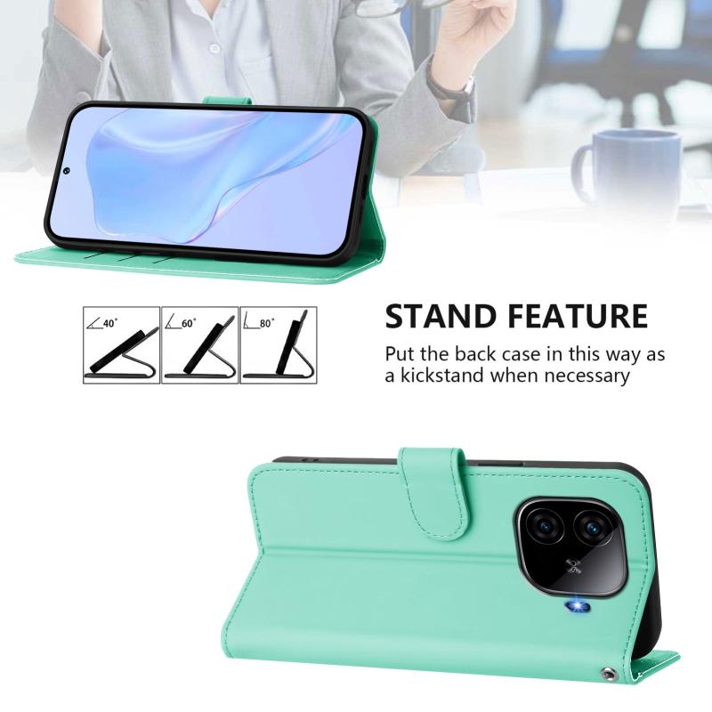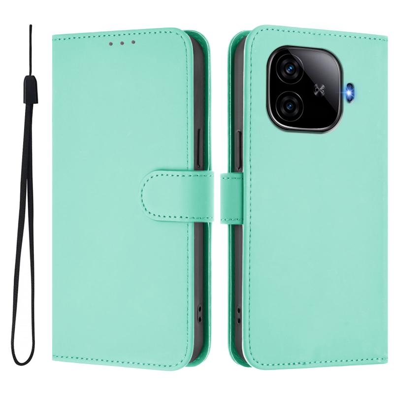 Θήκη τηλεφώνου από δέρμα με αίσθηση, συμπαγές χρώμα για vivo iQOO Z9 5G / Z9 Turbo 5G με κορδόνι (Καφέ)