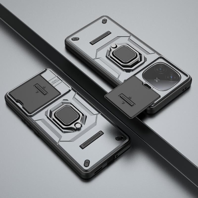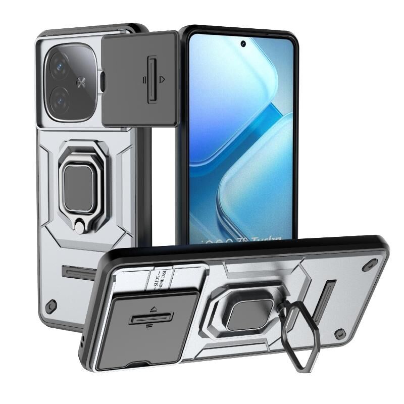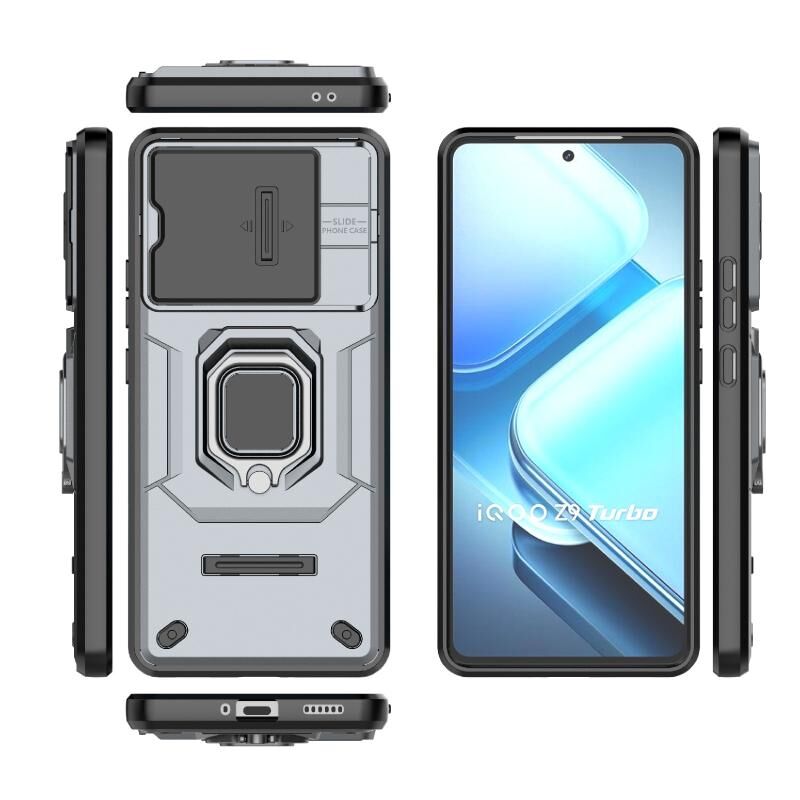 Για vivo iQOO Z9 Turbo 5G συρόμενη Camshield TPU + PC Αδιάβροχη θήκη τηλεφώνου με θήκη (Γκρι)