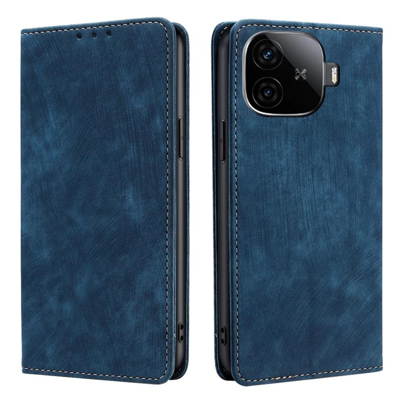 Θήκη τηλεφώνου από δέρμα με μαγνητική βάση και αντι-κλοπής RFID για vivo iQOO Z9 Turbo (Μπλε)