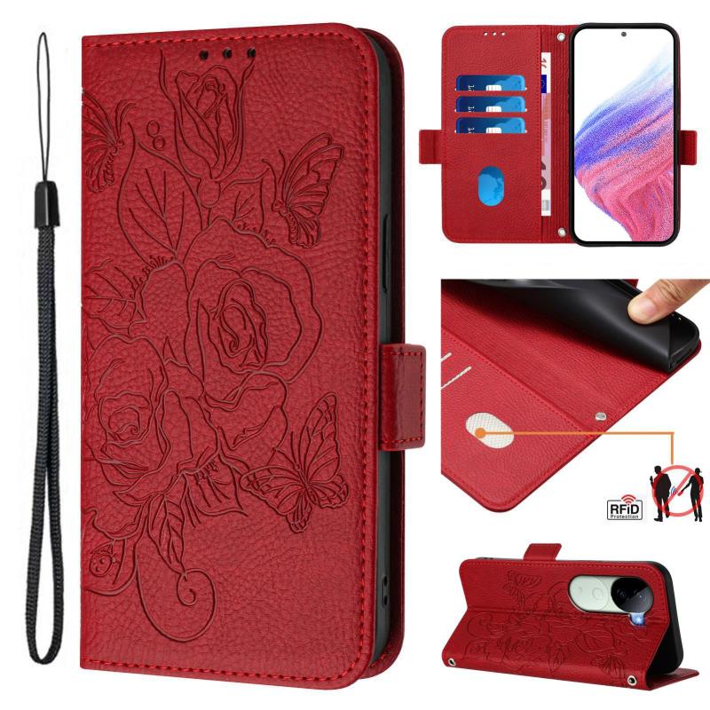 Θήκη τηλεφώνου από δέρμα με ανάγλυφο σχέδιο και προστασία RFID κατά του κλοπής για vivo iQOO Z9s 5G / V40e 5G Ινδία (Πράσινο)