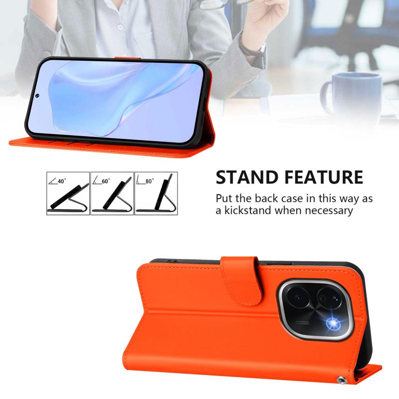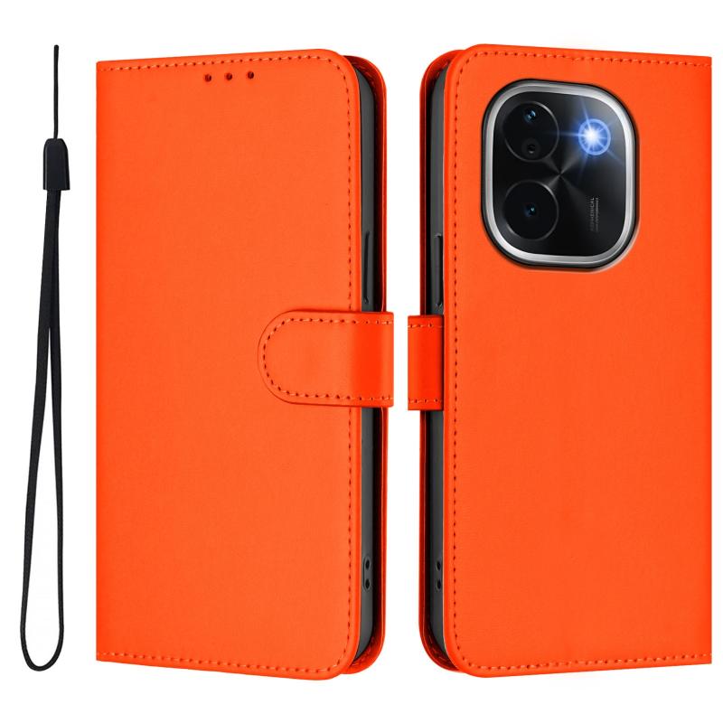 Θήκη τηλεφώνου από δέρμα με συμπαγή χρώματα για vivo iQOO Z9s Pro 5G India με κορδόνι (Καφέ)