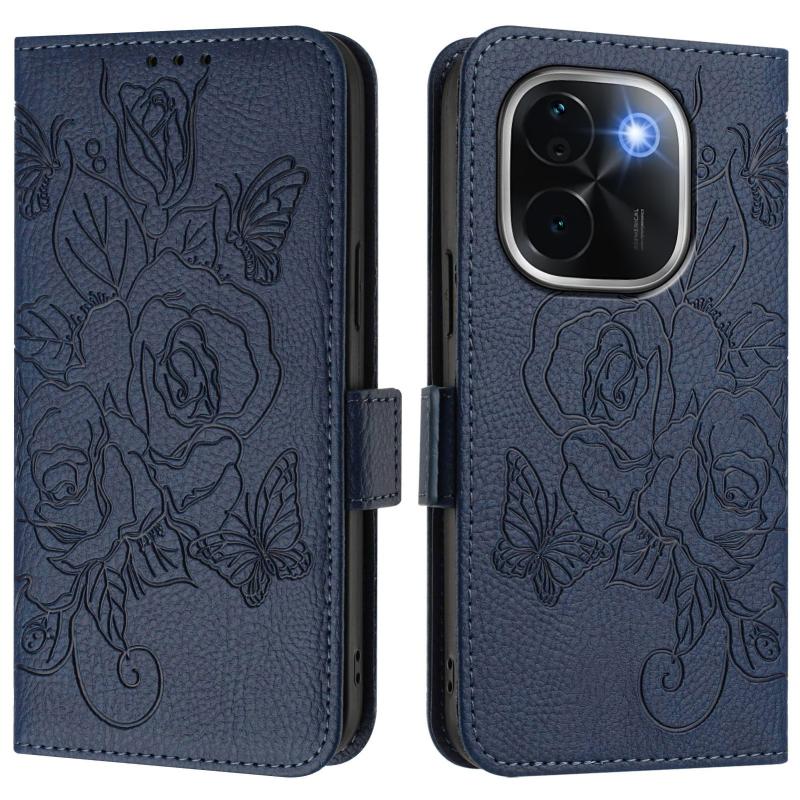 For vivo iQOO Z9s Pro 5G / T3 Pro 5G India Embossed Rose RFID Anti-theft Leather Phone Case(Dark Blue)