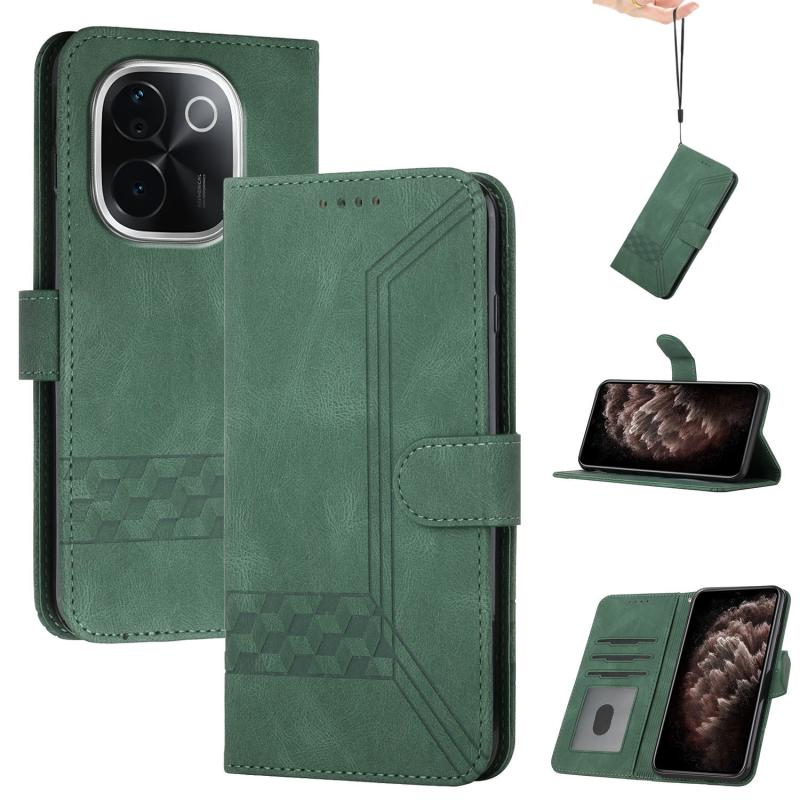 For vivo iQOO Z9s Pro / T3 Pro 5G India Cubic Skin Feel Flip Leather Phone Case(Green)