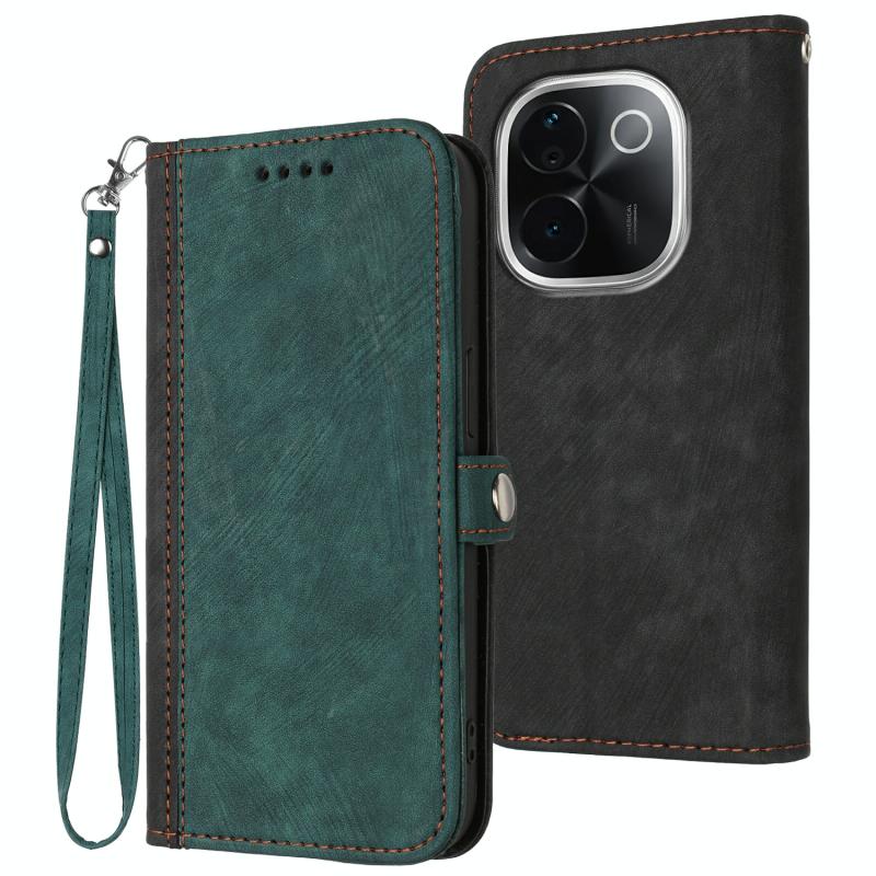 For vivo iQOO Z9s Pro / T3 Pro 5G India Side Buckle Double Fold Hand Strap Leather Phone Case(Dark Green)