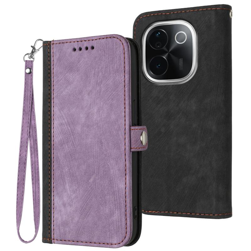 For vivo iQOO Z9s Pro / T3 Pro 5G India Side Buckle Double Fold Hand Strap Leather Phone Case(Purple)