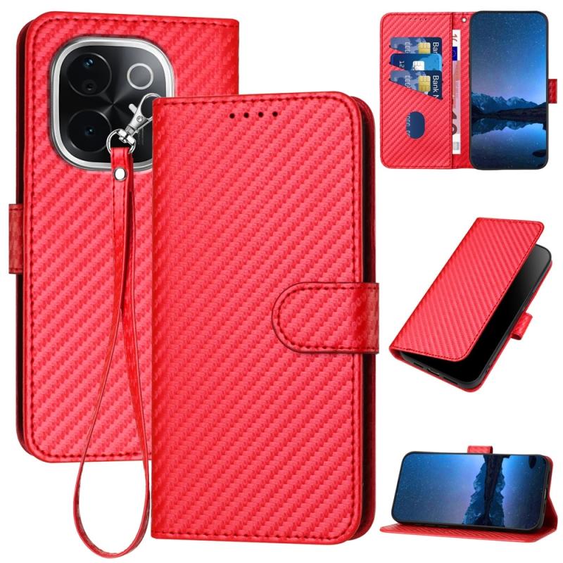 Θήκη τηλεφώνου από δέρμα με ανθρακονήματα και λουρί για vivo iQOO Z9s Pro / T3 Pro 5G India YX0070 (Κόκκινο)