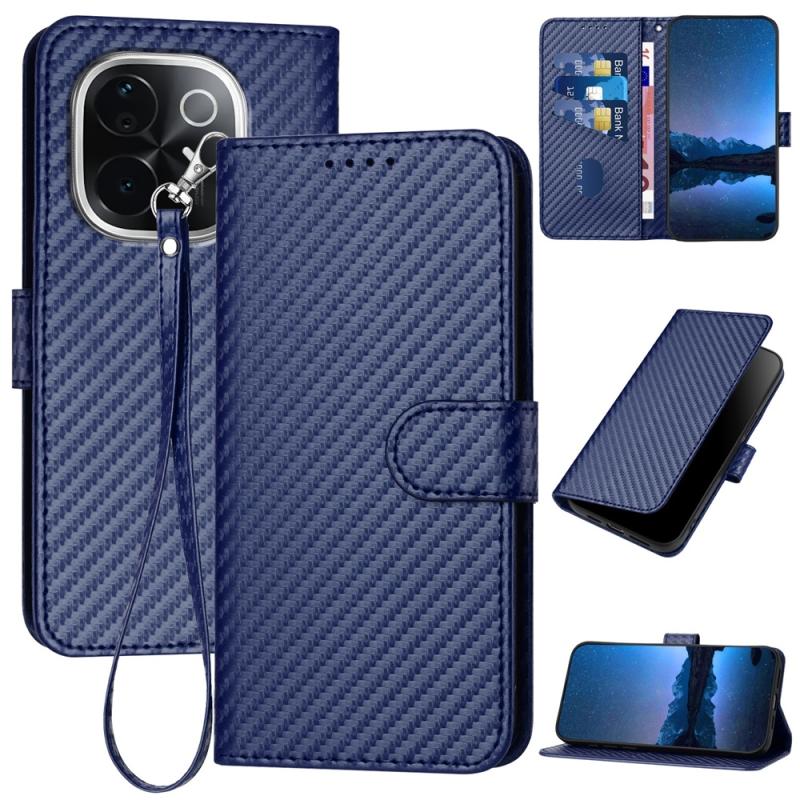 Θήκη τηλεφώνου από δέρμα με ανθρακονήματα και λουρί για vivo iQOO Z9s Pro / T3 Pro 5G India YX0070 (Κόκκινο)