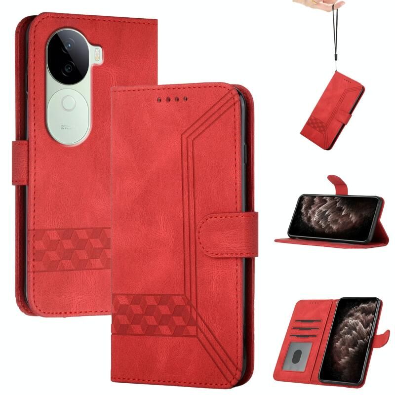 For vivo iQOO Z9s / V40e India Cubic Skin Feel Flip Leather Phone Case(Red)
