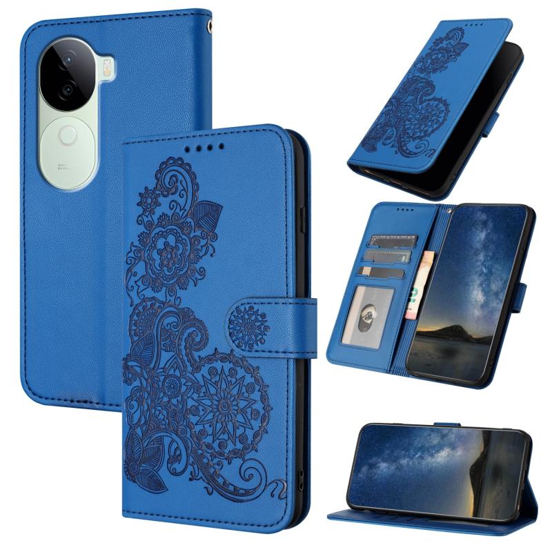 For vivo iQOO Z9s / V40e India Datura Flower Embossed Flip Leather Phone Case(Blue)