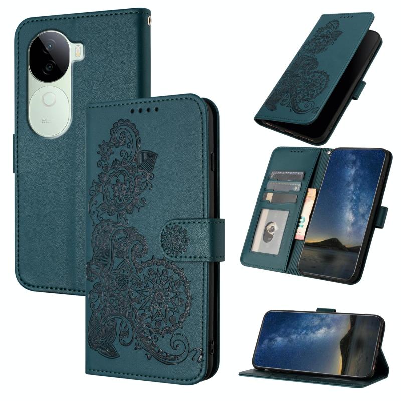 For vivo iQOO Z9s / V40e India Datura Flower Embossed Flip Leather Phone Case(Dark Green)