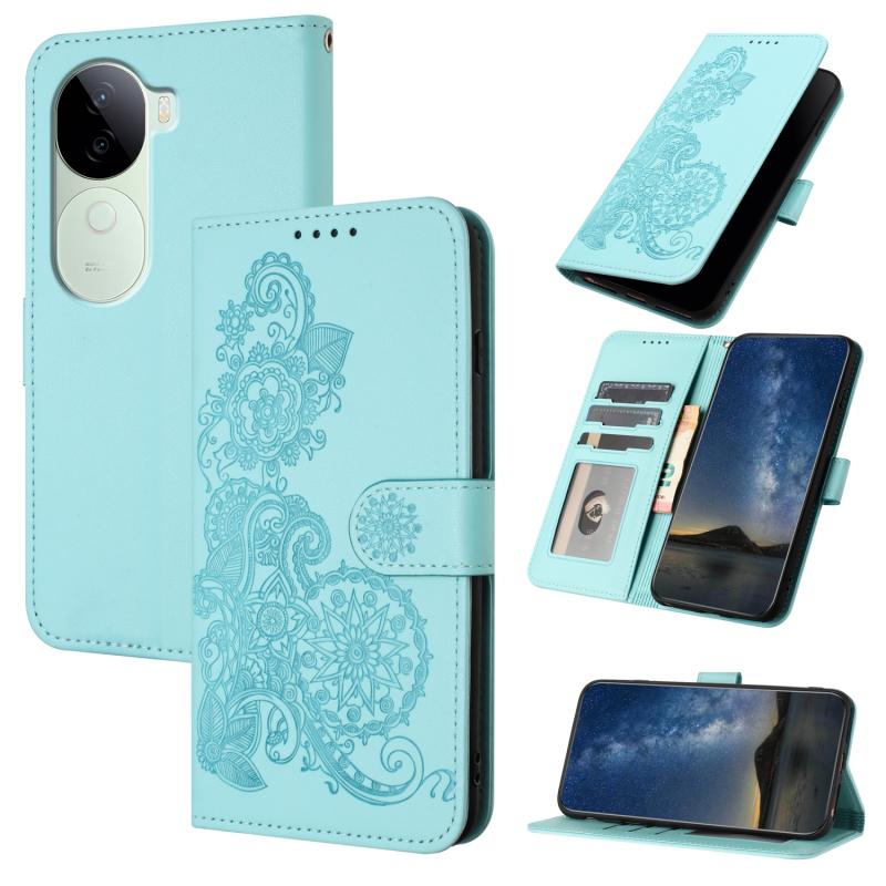 For vivo iQOO Z9s / V40e India Datura Flower Embossed Flip Leather Phone Case(Light blue)
