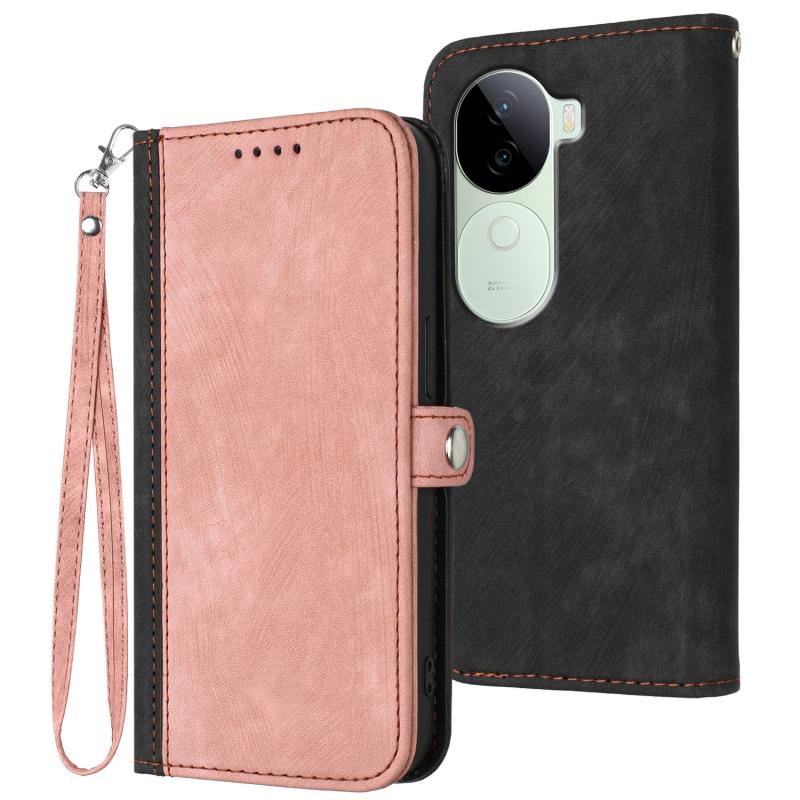 For vivo iQOO Z9s / V40e India Side Buckle Double Fold Hand Strap Leather Phone Case(Pink)