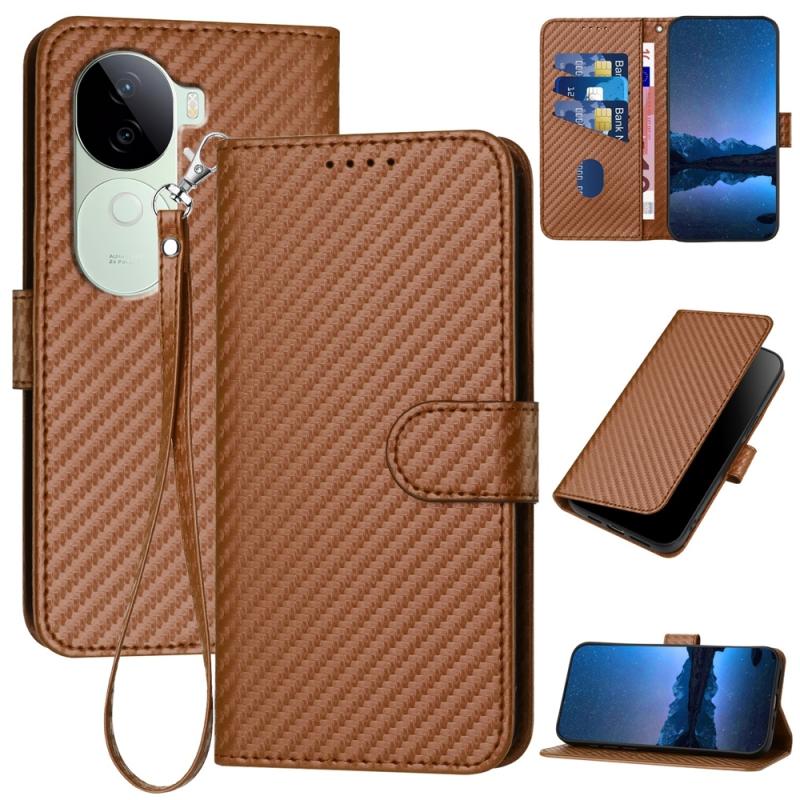 For vivo iQOO Z9s / V40e India YX0070 Carbon Fiber Buckle Leather Phone Case with Lanyard(Coffee)