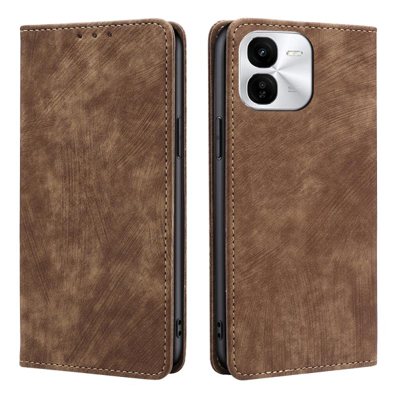 Θήκη τηλεφώνου από δέρμα με μαγνήτη και αντι-κλοπής RFID για vivo iQOO Z9x 5G (Καφέ)