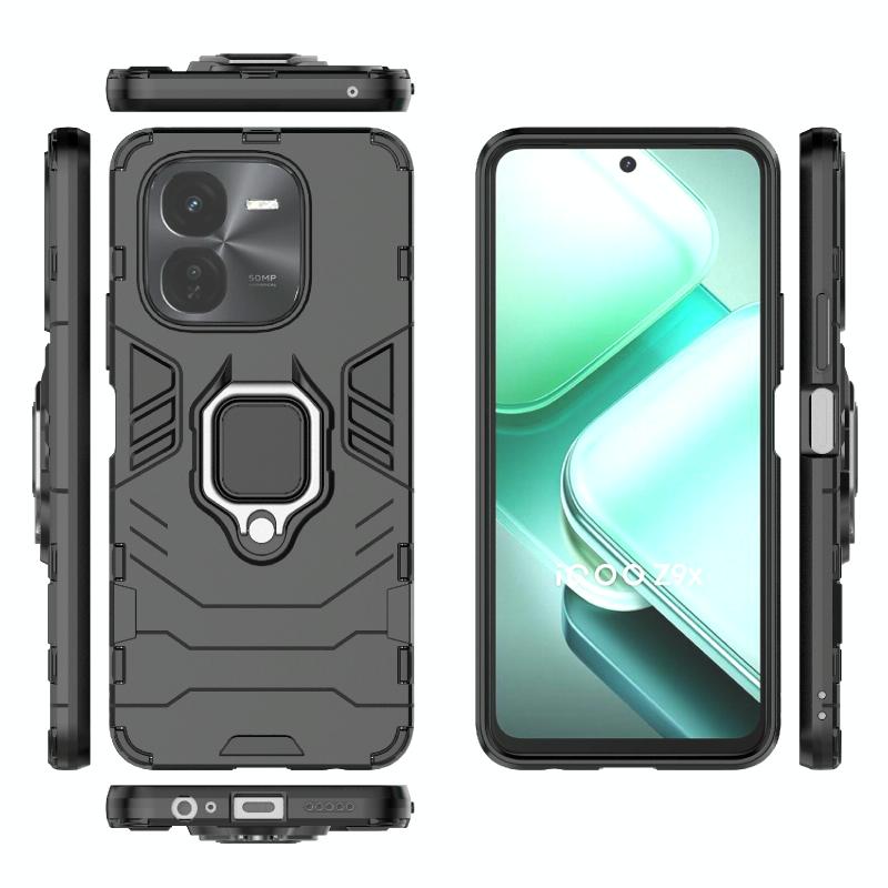 For vivo iQOO Z9X 5G Shockproof PC + TPU Holder Phone Case(Black)