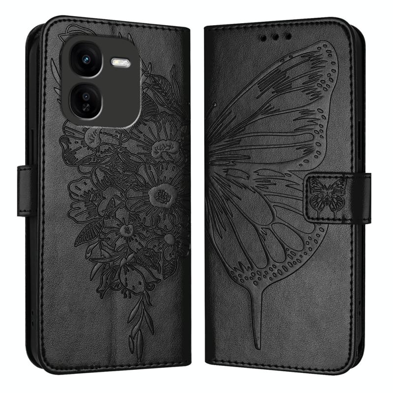 For vivo iQOO Z9x Embossed Butterfly Leather Phone Case(Black)