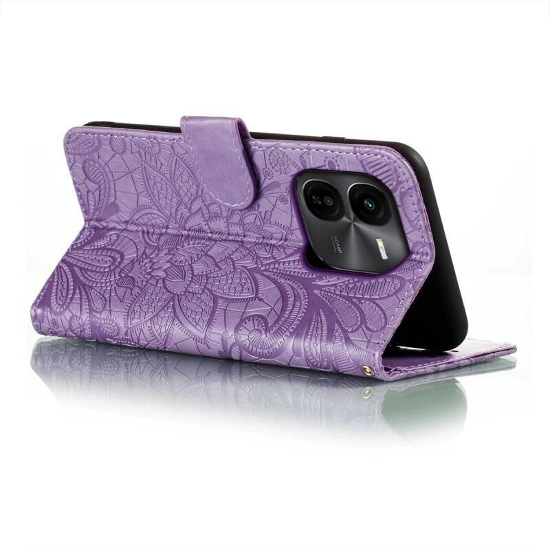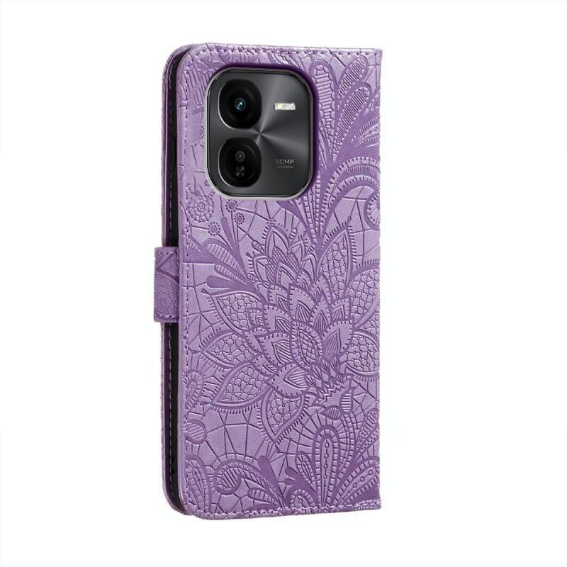 8. Σχεδιασμός με ανάγλυφο λουλούδι από δαντέλα, Η θήκη είναι κατασκευασμένη από προσεκτικά επιλεγμένο δέρμα που της δίνει μια εκλεπτυσμένη και πολυτελή εμφάνιση και αίσθηση.