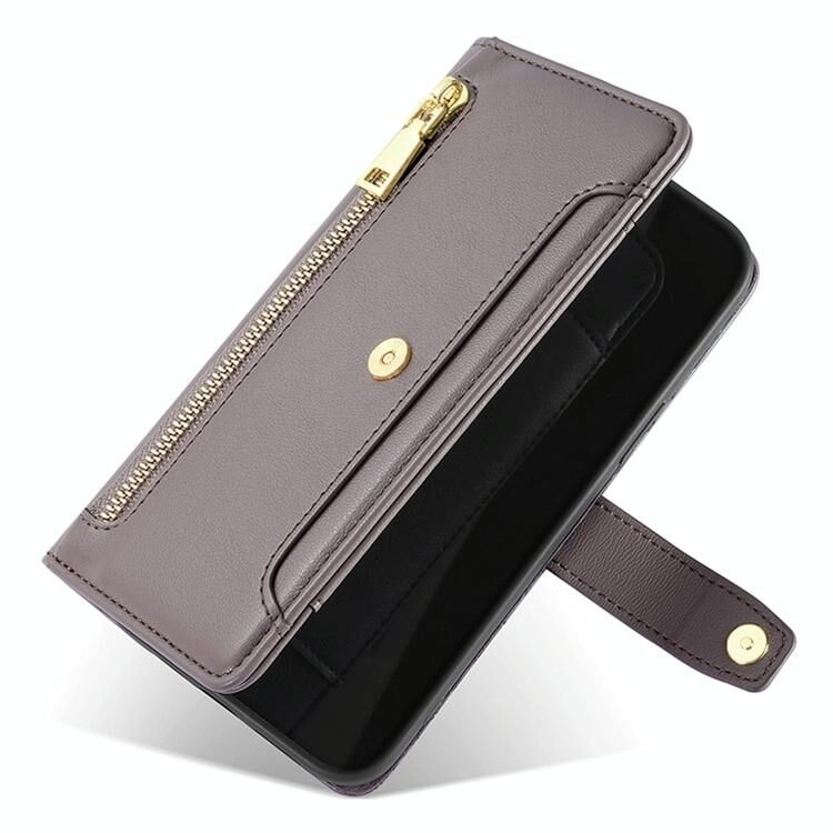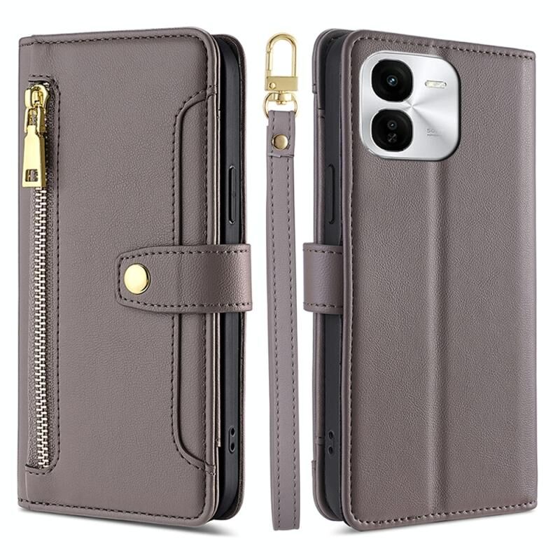 Για vivo iQOO Z9x Πρόβατα Υφή Cross-body φερμουάρ πορτοφόλι δερμάτινη θήκη τηλεφώνου (Γκρι)