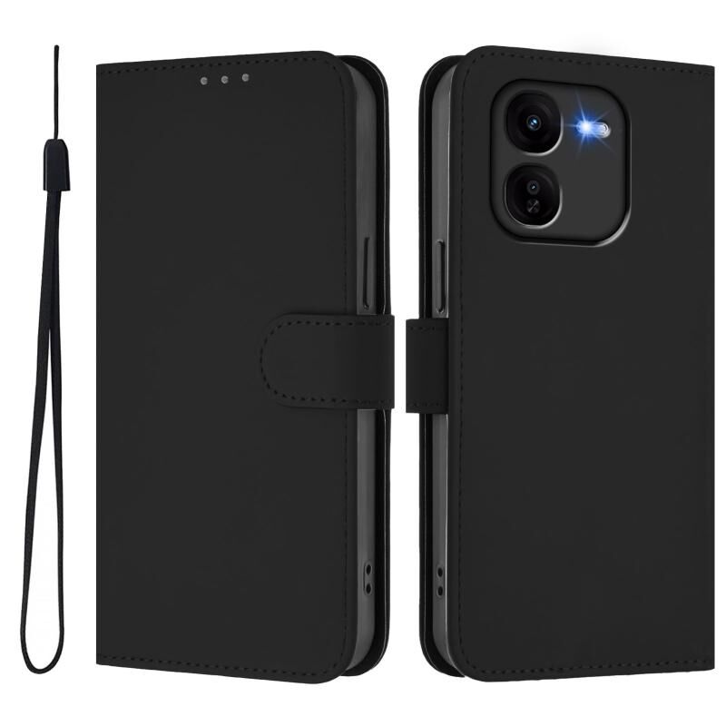 Θήκη τηλεφώνου από δέρμα με συμπαγή χρώματα και αίσθηση δέρματος για vivo iQOO Z9X με κορδόνι (Καφέ)