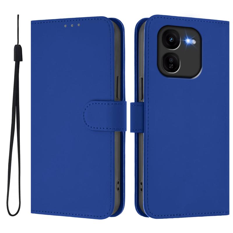 Θήκη τηλεφώνου από δέρμα με συμπαγή χρώματα και αίσθηση δέρματος για vivo iQOO Z9X με κορδόνι (Καφέ)