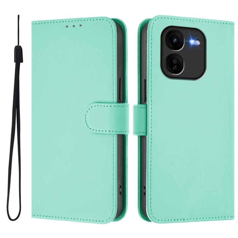 Θήκη τηλεφώνου από δέρμα με συμπαγή χρώματα και αίσθηση δέρματος για vivo iQOO Z9X με κορδόνι (Καφέ)