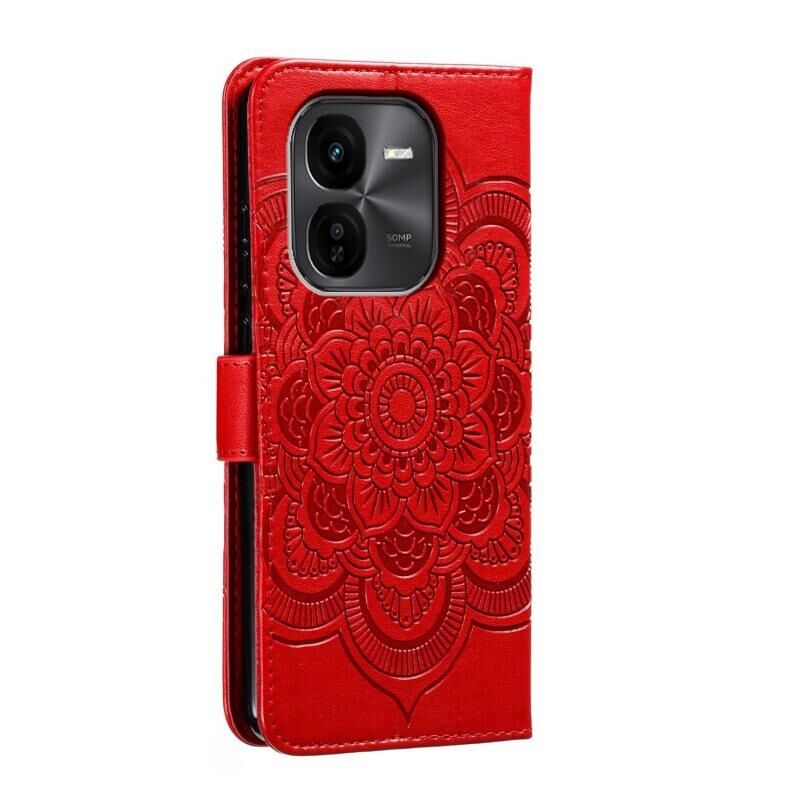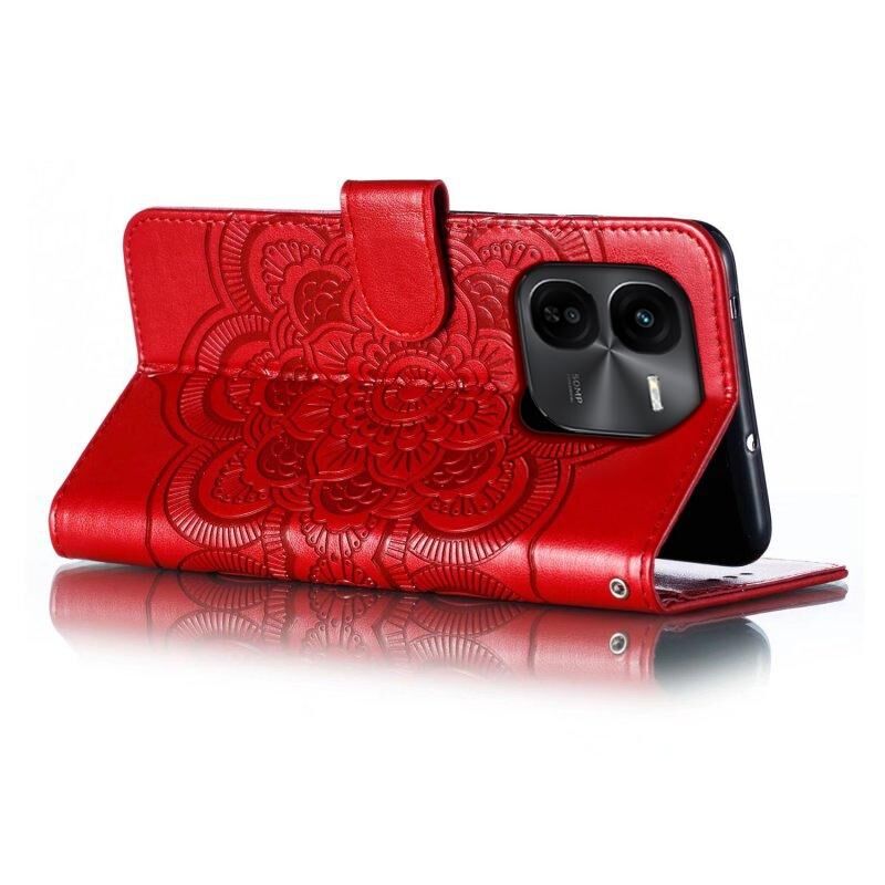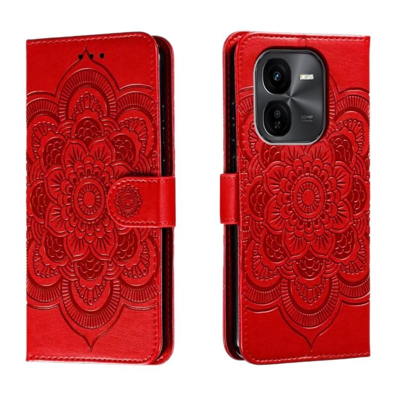 Για vivo iQOO Z9X Sun Mandala ανάγλυφο μοτίβο τηλέφωνο δερμάτινη θήκη (Κόκκινο)