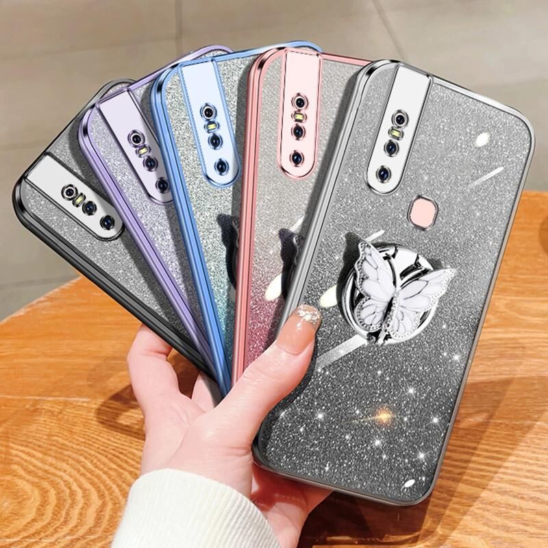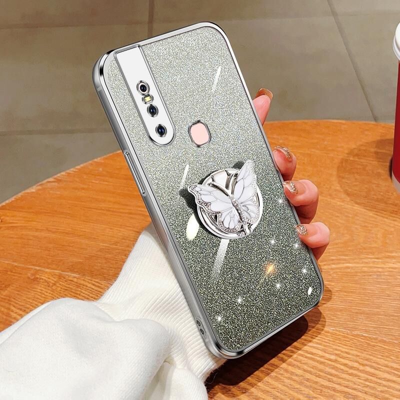 Θήκη τηλεφώνου TPU για vivo S1 με επιμετάλλωση, διαβαθμισμένη λάμψη, πεταλούδα (Ασημί)