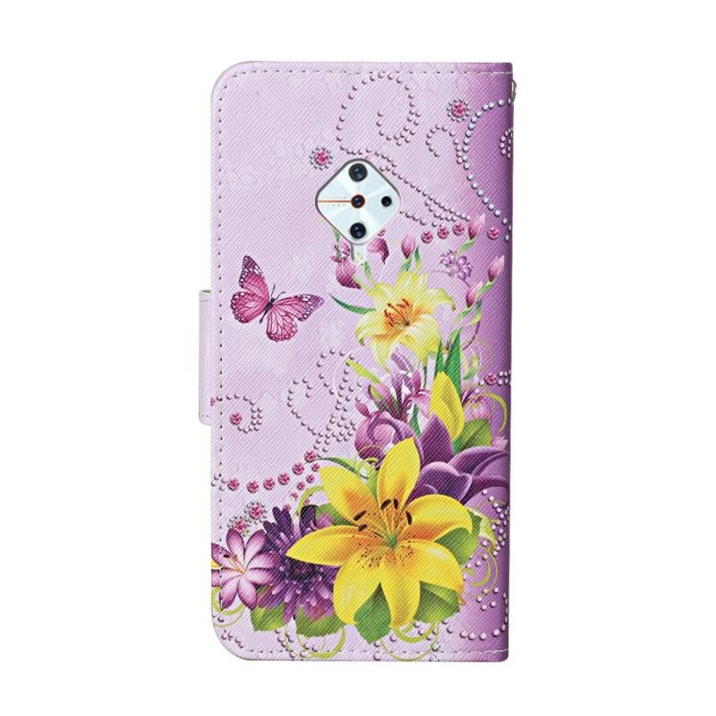 Θήκη δέρματος οριζόντιας αναδίπλωσης με σχέδιο έγχρωμης ζωγραφικής για Vivo S1 Pro με βάση & υποδοχές καρτών & πορτοφόλι (Κόκκινο Λουλούδι Πεταλούδα)