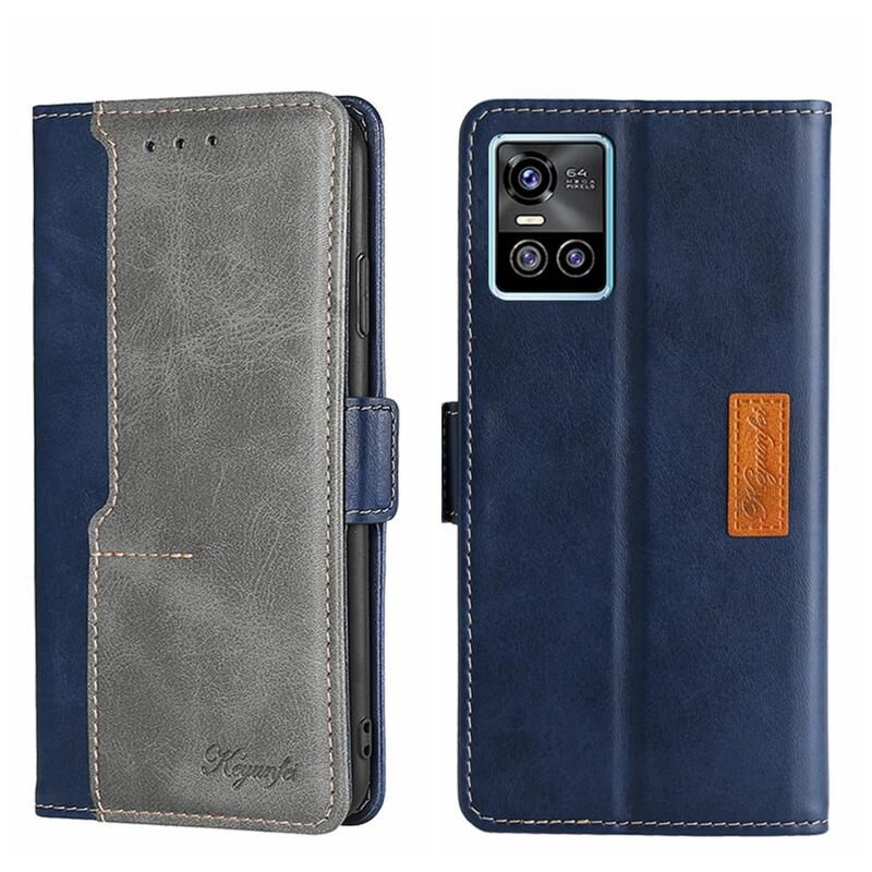 Για vivo S10/S10 Pro Αντίθετο χρώμα πλευρά πόρπη δερμάτινη θήκη τηλεφώνου υπόθεση (μπλε + γκρι)