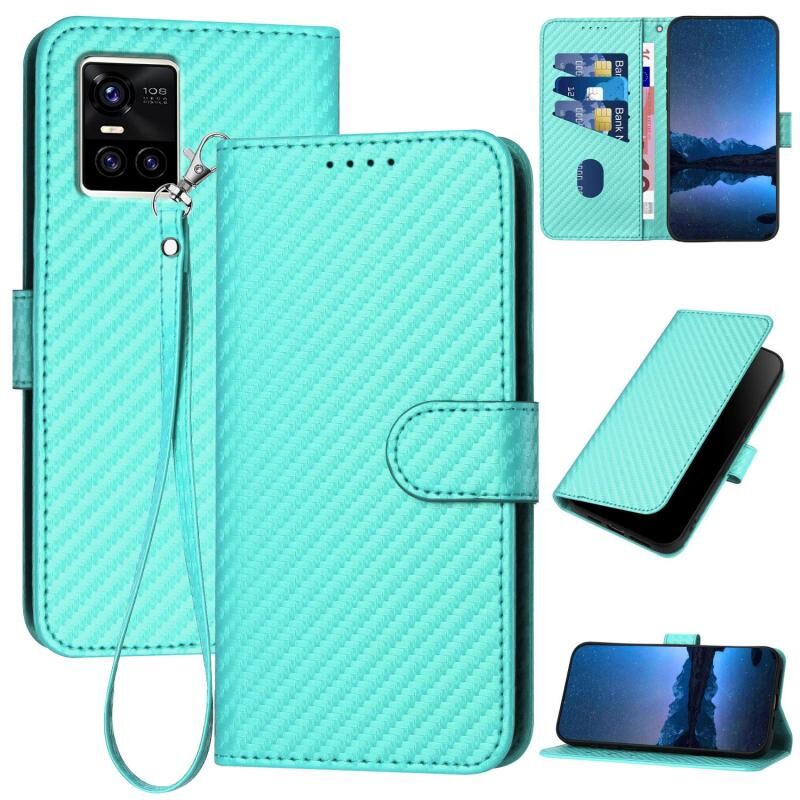 For vivo S10 / S10 Pro YX0070 Carbon Fiber Buckle Leather Phone Case with Lanyard(Light Blue)