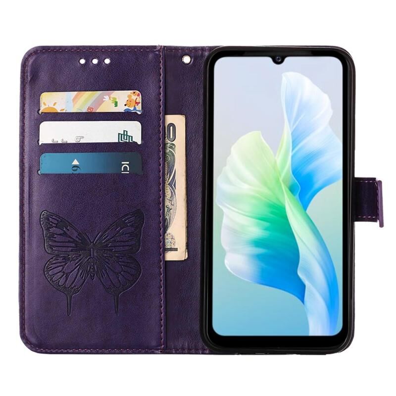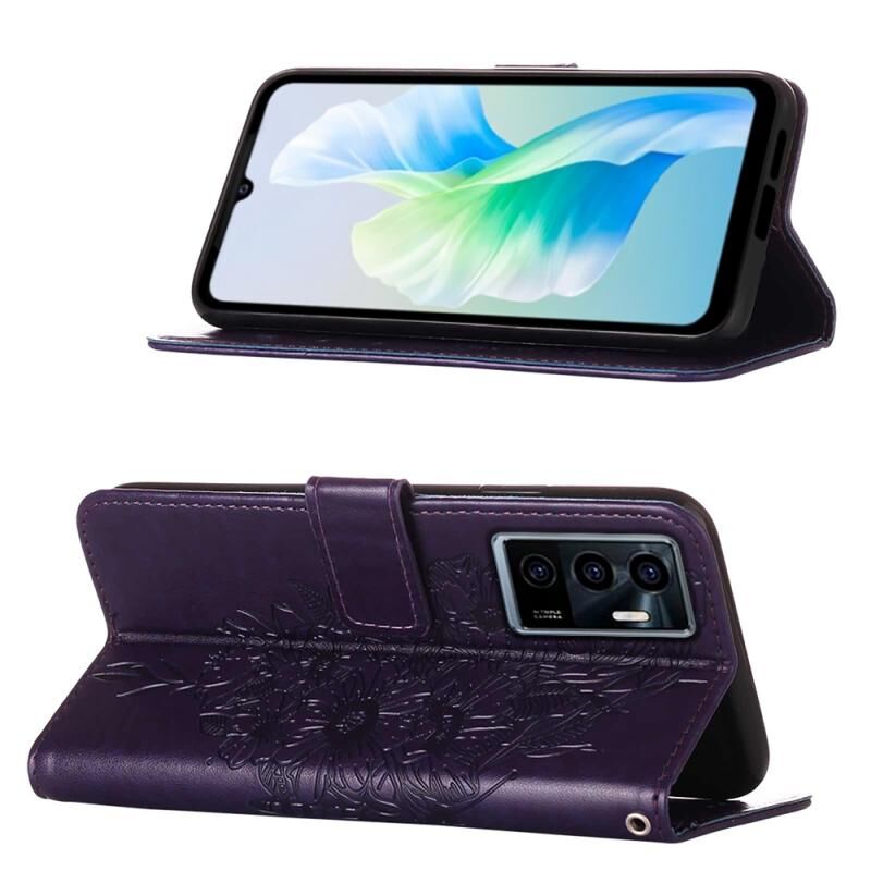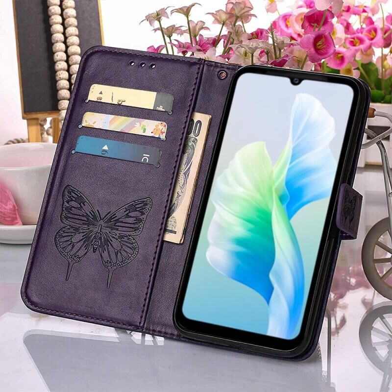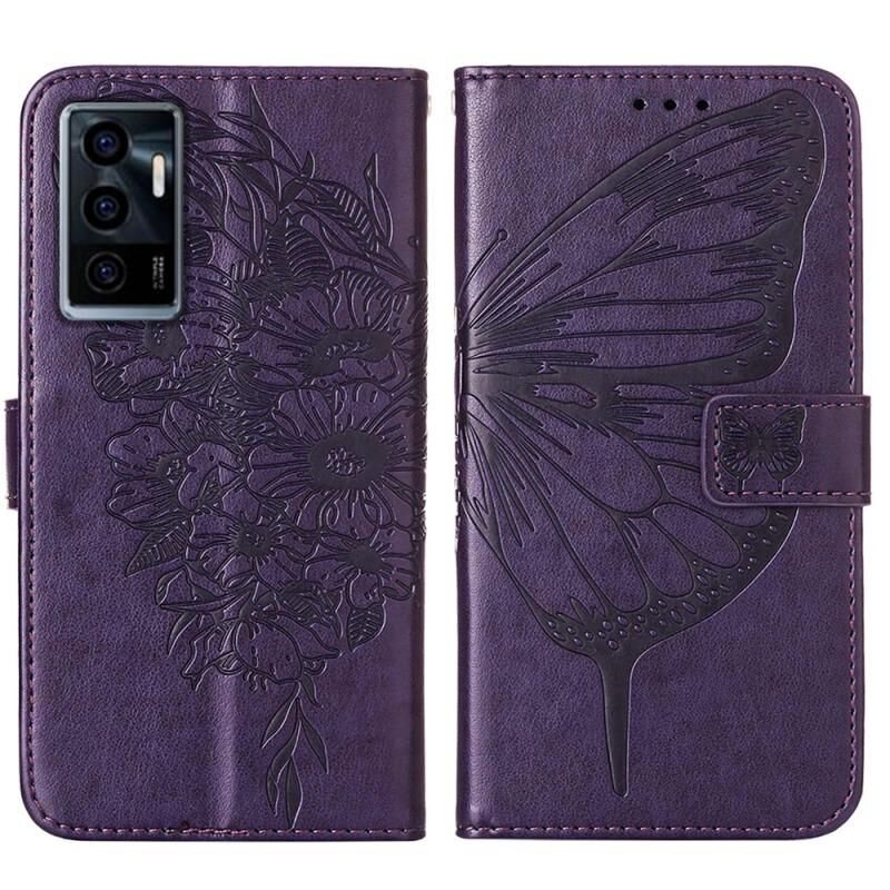 Θήκη τηλεφώνου από δέρμα με ανάγλυφο σχέδιο πεταλούδας για vivo S10e 5G/V23e 4G/V23E 5G/Y75 4G (Σκούρο μωβ)