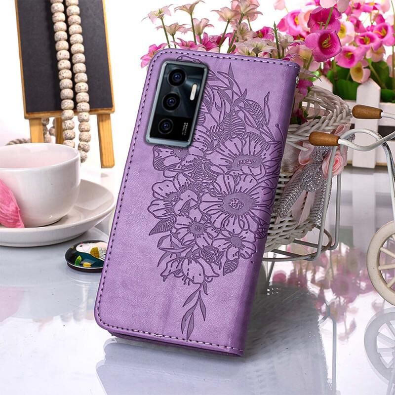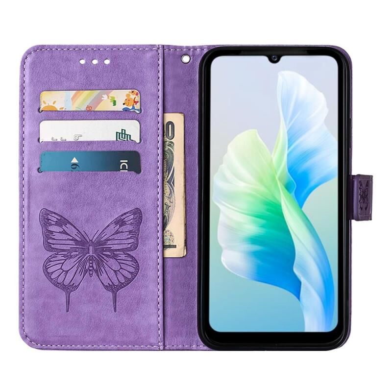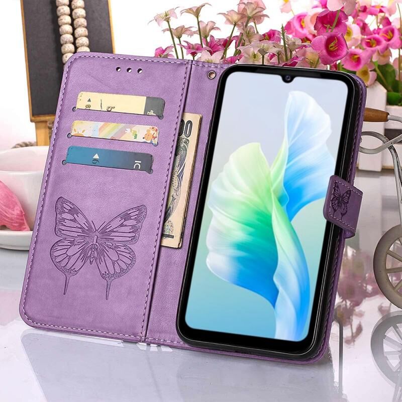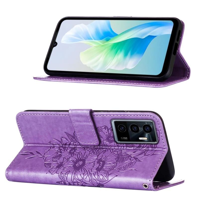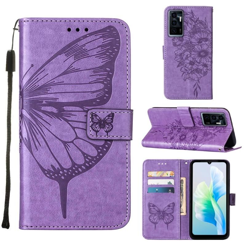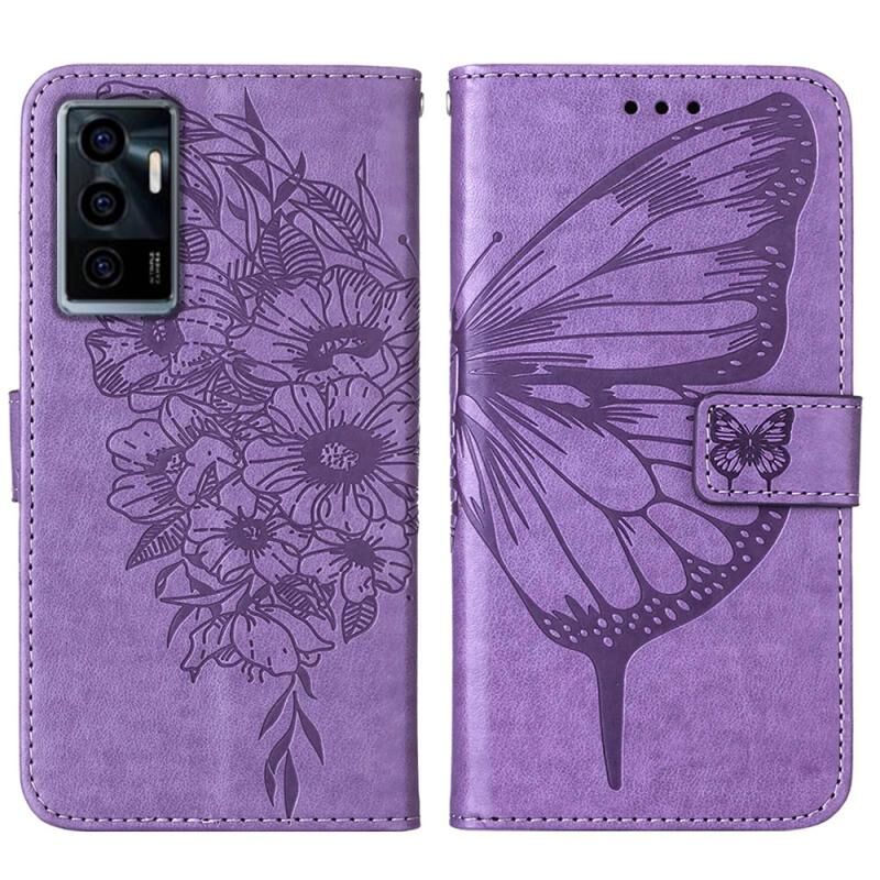 Θήκη τηλεφώνου από δέρμα με ανάγλυφο σχέδιο πεταλούδας για vivo S10e 5G/V23e 4G/V23E 5G/Y75 4G (Μωβ)