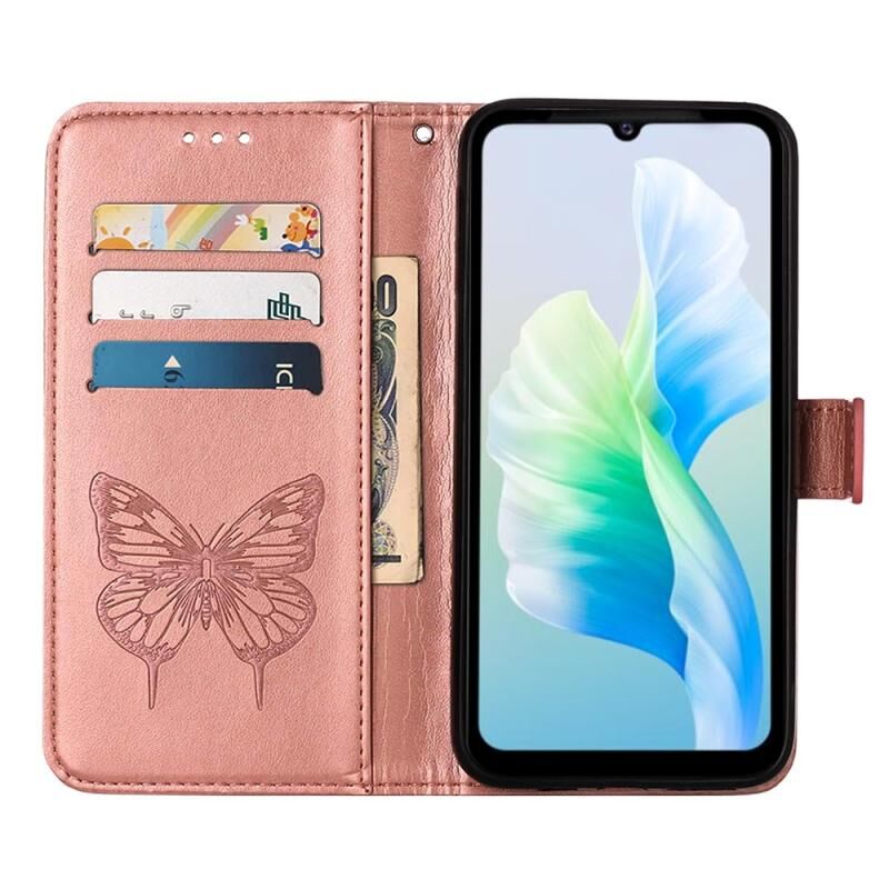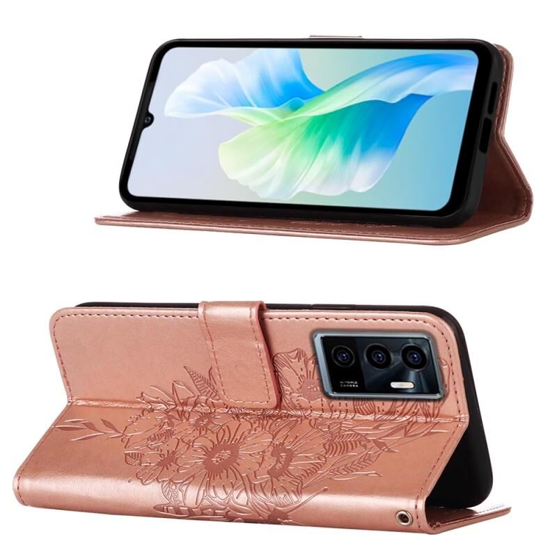 Θήκη τηλεφώνου από δέρμα με ανάγλυφο σχέδιο πεταλούδας για vivo S10e 5G/V23e 4G/V23E 5G/Y75 4G (Ροζ χρυσός)