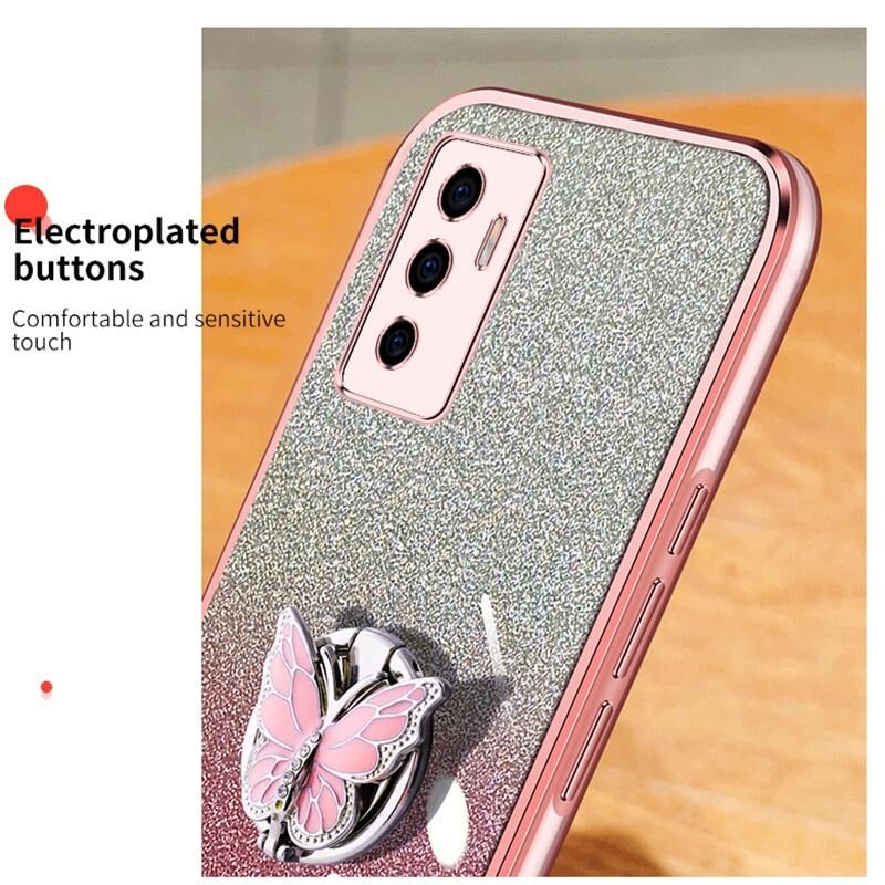 Θήκη τηλεφώνου TPU με επιμετάλλωση, διαβαθμισμένη λάμψη, πεταλούδα για vivo S10e (Ασημί)
