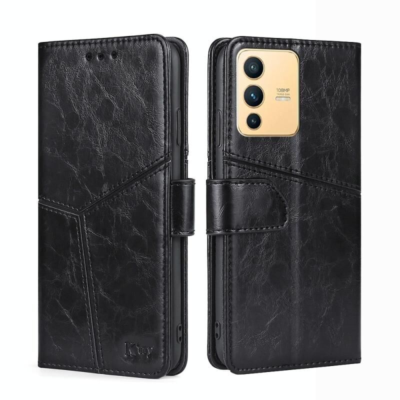 Για το vivo S12 5G/V23 Γεωμετρική ραφή οριζόντια Flip δερμάτινη θήκη τηλεφώνου (μαύρο)