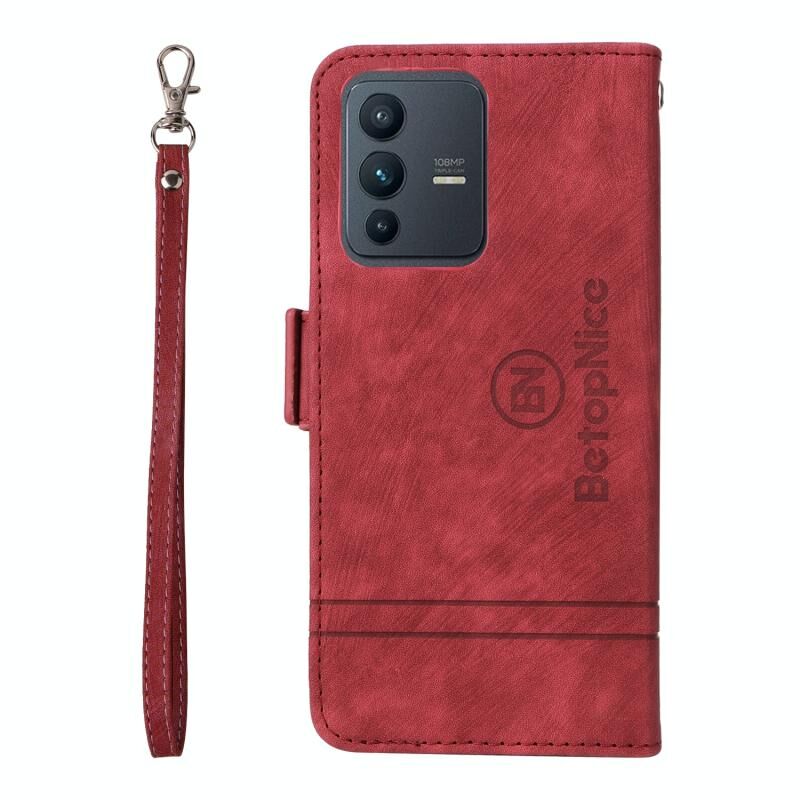 Για vivo S12 BETOPNICE Διπλής όψης πόρπη δερμάτινη θήκη τηλεφώνου (κόκκινο) (Κόκκινο)