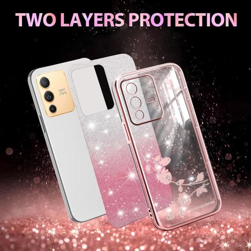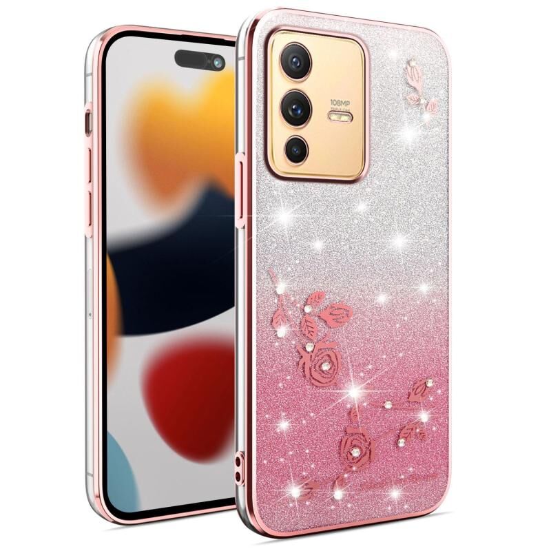 Θήκη τηλεφώνου για vivo S12 Gradient Glitter Flower All-inclusive (Μωβ)