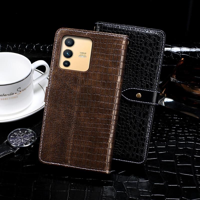 Για vivo S12 idewei Δερμάτινη θήκη τηλεφώνου με οριζόντιο άνοιγμα και υφή κροκόδειλου (Σκούρο Μπλε) (idewei)