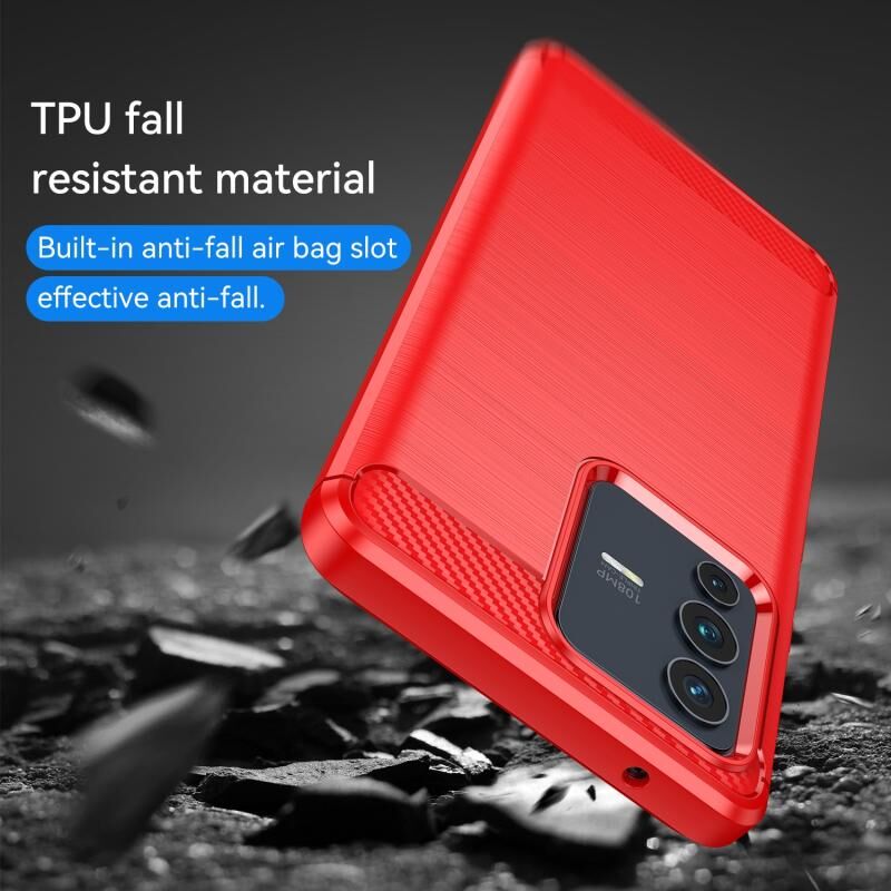 Για vivo S12 Pro βουρτσισμένη υφή Carbon Fiber TPU τηλέφωνο υπόθεση (Κόκκινο)